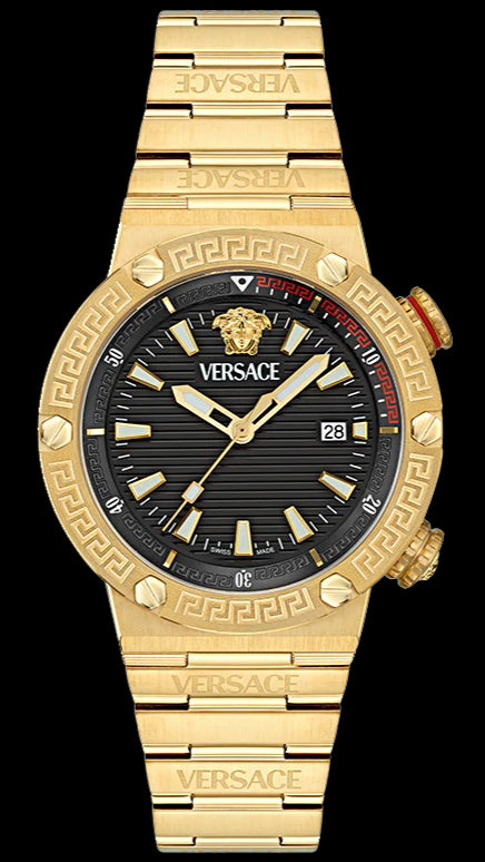 Versace Greca Logo Quartz Black Dial Gold Steel Strap Watch for Men - VE8G00624