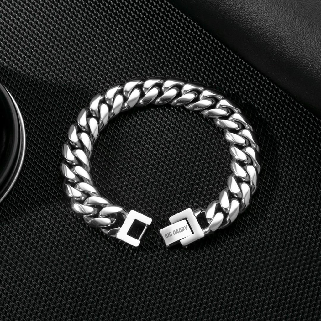The Big Daddy All Silver Cuban Link 10mm Bracelet is a hip hop must-have. Whether you're rockin' it solo or layering it up, this bracelet will elevate your hip hop look and become a staple in your jewelry collection for years to come. This is the perfect piece for adding a touch of luxury to your everyday look.