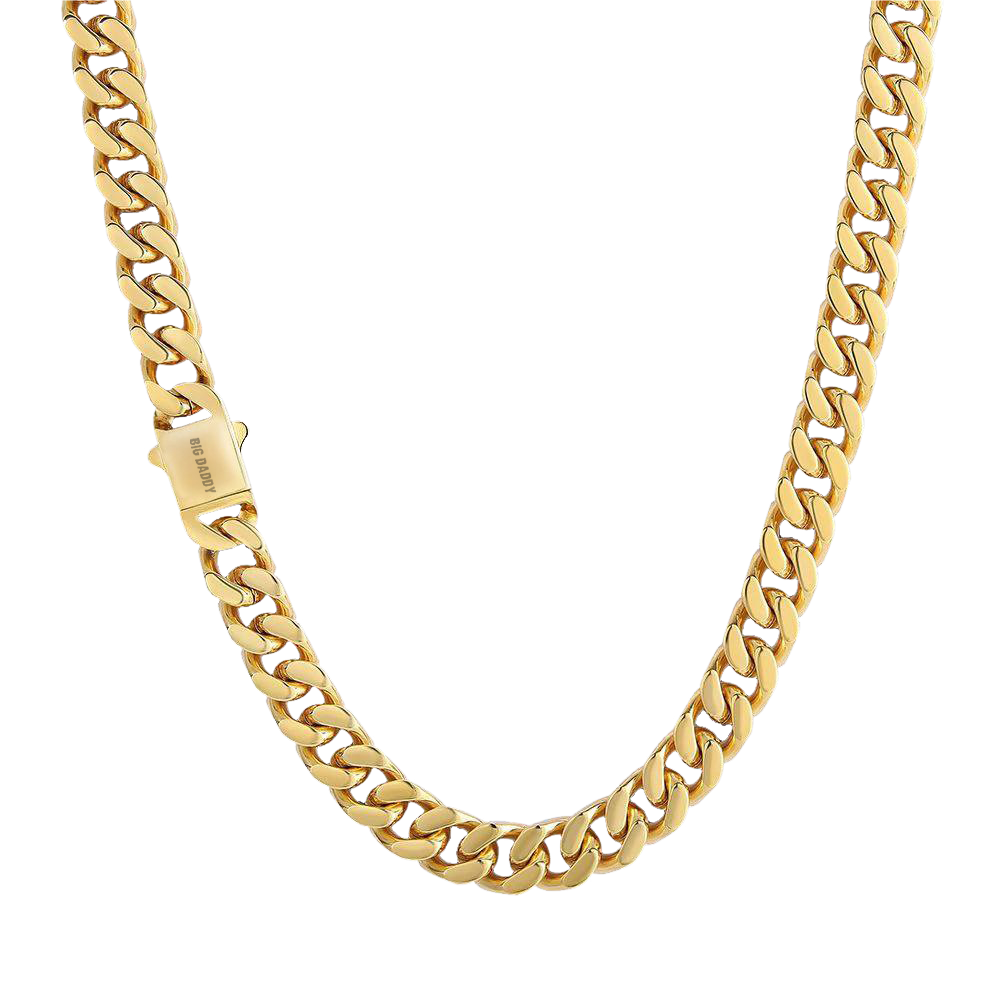 Introducing the Big Daddy 12MM Gold Cuban Chain! This exquisite piece of jewelry is the epitome of luxury and style. It comes with safety clasps and has fine craftsmanship, making it a stylish hip-hop jewelry item. Perfect for everyday wear or special occasions, this versatile piece will make a lasting impression. Upgrade your jewelry collection today!