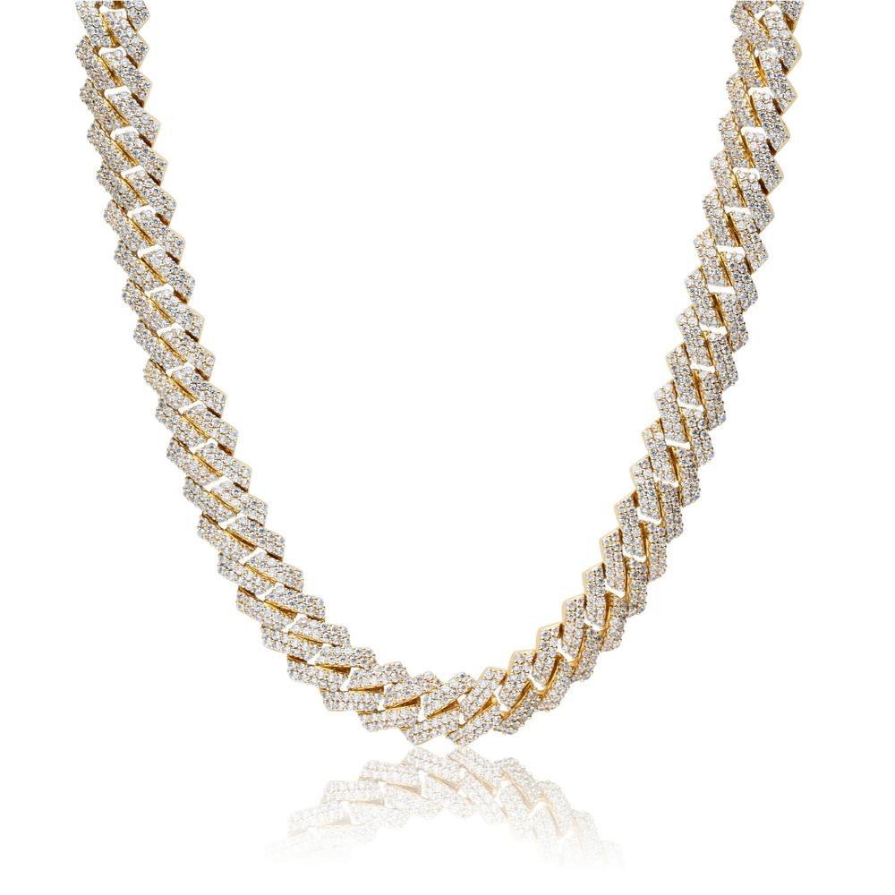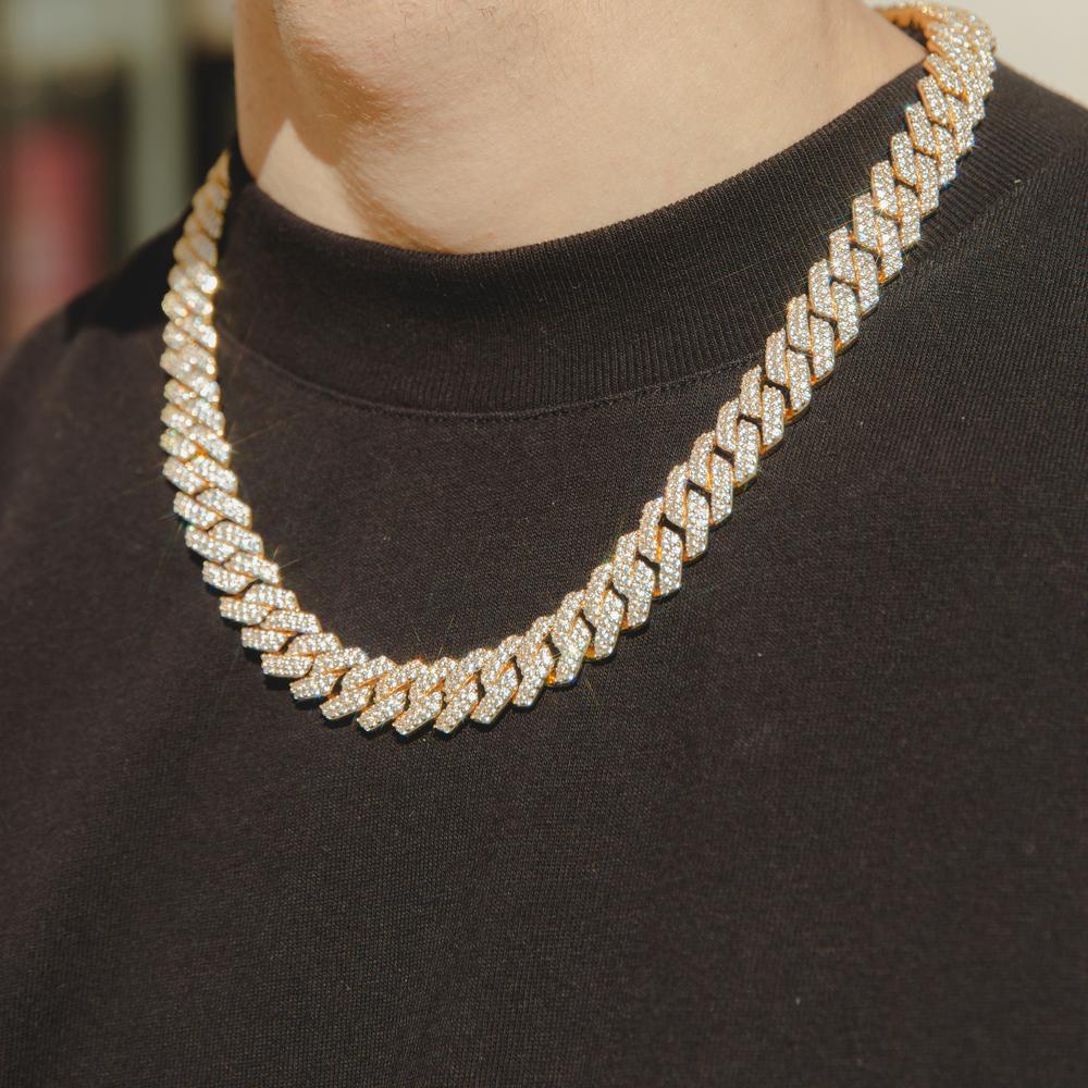 Make a bold statement with the BIG DADDY 15MM Gold & Diamond Prong Link Chain. Worn by the most popular Hip-Hop artists in the world. The prong-lifted stones will catch the light and shine from all angles. Crafted from 15mm wide gold links and dazzling diamonds, this luxurious chain adds a touch of glamour to any outfit. The diamonds are expertly set for maximum brilliance and the gold links ensure durability and comfort. Elevate your style with this stunning piece of jewelry.