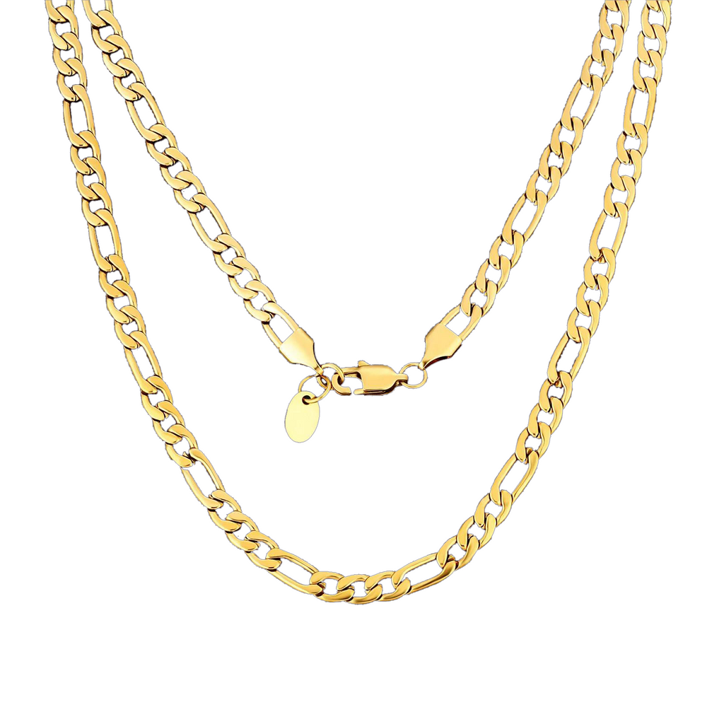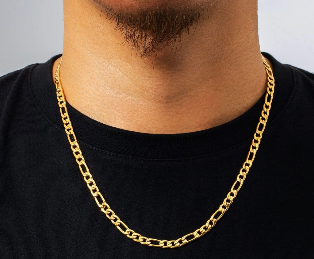 The Figaro chain is a classic and versatile piece of jewelry with flattened links that alternate in size, creating a distinctive pattern. It can be worn with various outfits and is available in different widths, lengths, and materials to fit your style and budget. The Figaro chain is a timeless and stylish addition to any jewelry collection.