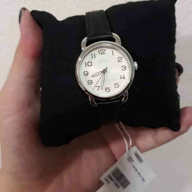 Coach Delancey White Dial Black Leather Strap Ladies Watch 14502247