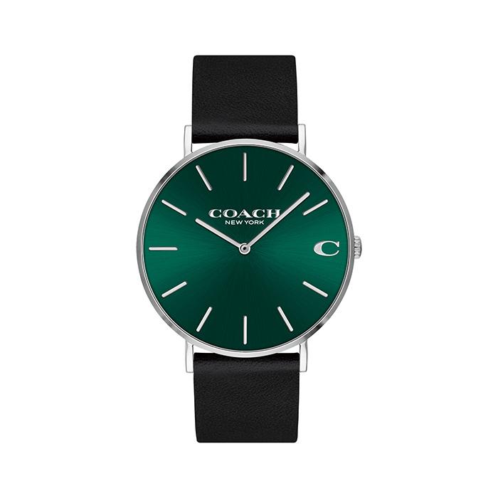 Coach Green Dial Black Calfskin Men's Watch 14602436