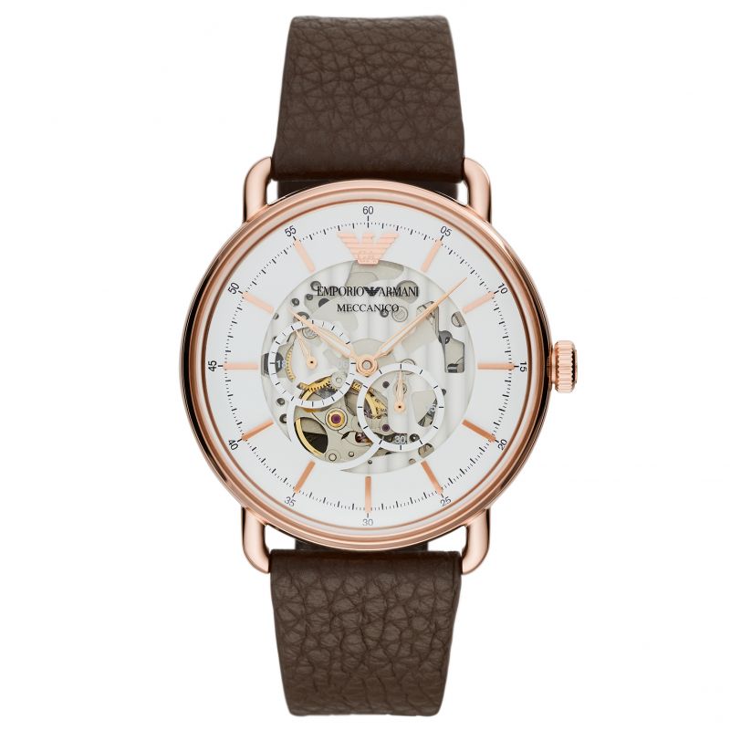 Emporio Armani Aviator Automatic Men's White Skeleton Dial Watch AR60027