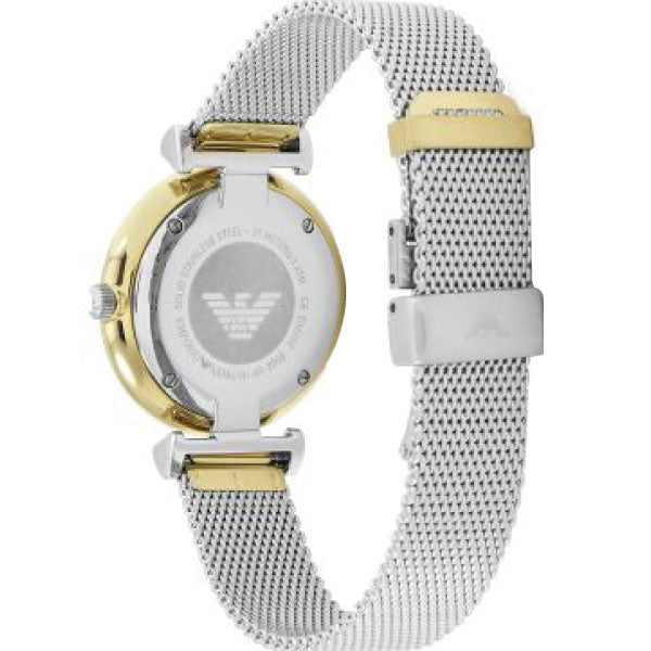 Emporio Armani Mother of Pearl Dial Ladies Watch AR2068 is an incredible interesting Ladies watch. Material of the case is PVD Gold plated while the dial colour is Mother of pearl. In regards to the water resistance, the watch has got a resistance up to 30 metres. It means it can be worn in scenarios where it is likely to be splashed but not immersed in water. It can be worn while washing your hands and will be fine in rain.