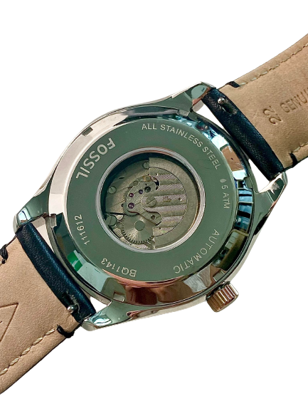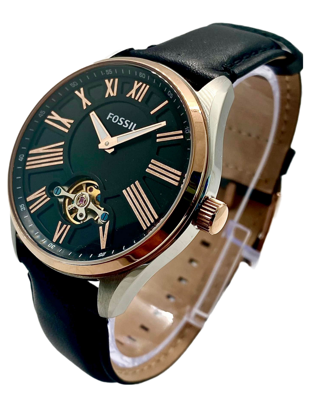 Fossil Black Dial Leather Automatic Men's Watch BQ1143