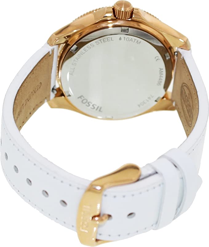 Fossil Cecile Rose gold White Leather Women's Watch AM4486