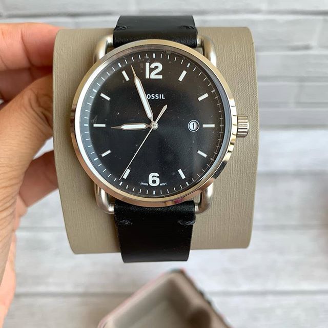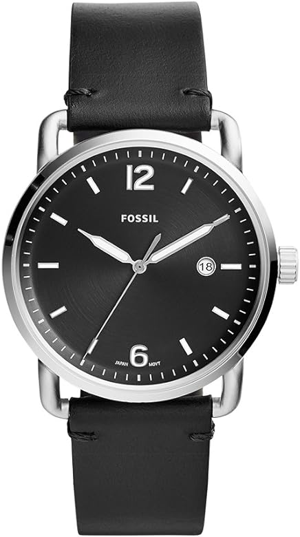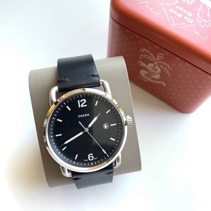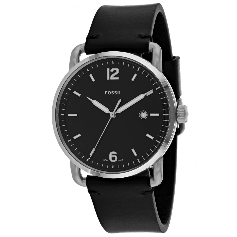 Fossil Commuter Three-Hand Date Black Leather Men's Watch FS5406