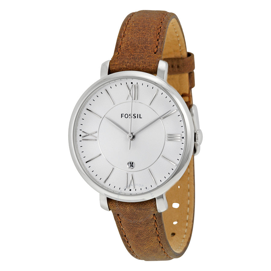 Fossil Jacqueline Silver Dial Tan Leather Strap Ladies Watch ES3708