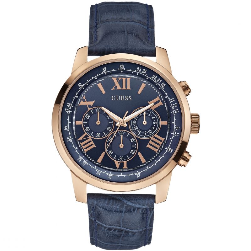 Guess Horizon Blue Dial Leather Strap Men's Watch W0380G5