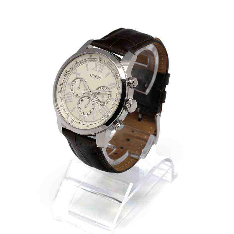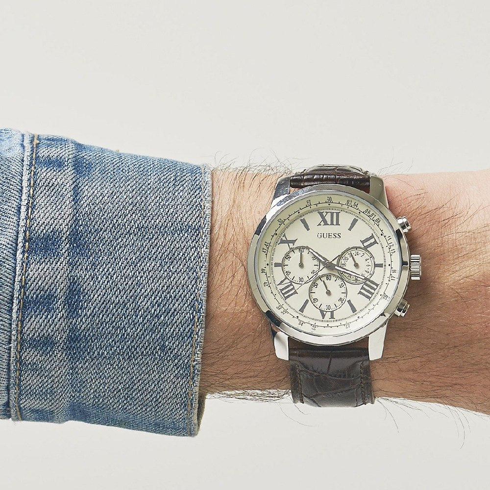 Guess Horizon Cream Dial Leather Strap Men's Watch W0380G2