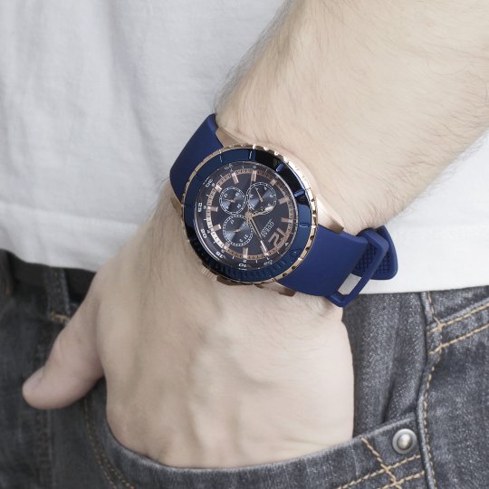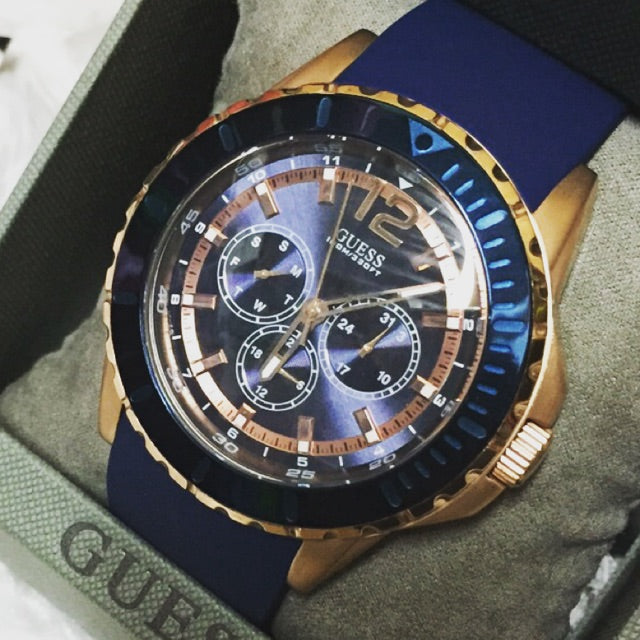 Guess Multi-Function Blue Dial Silicone Strap Men's Watch W0485G1