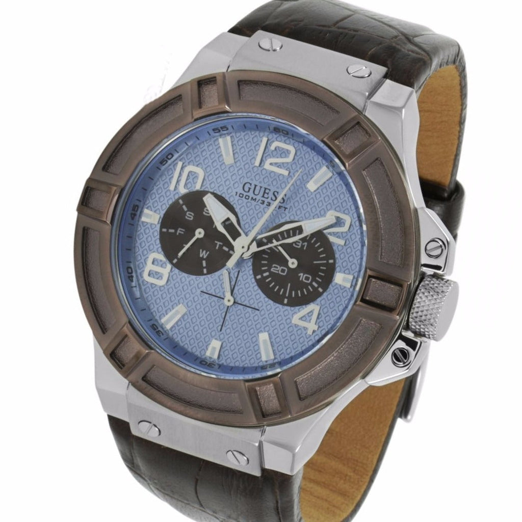 Guess Rigor Blue Dial Leather Strap Men's Watch W0040G10