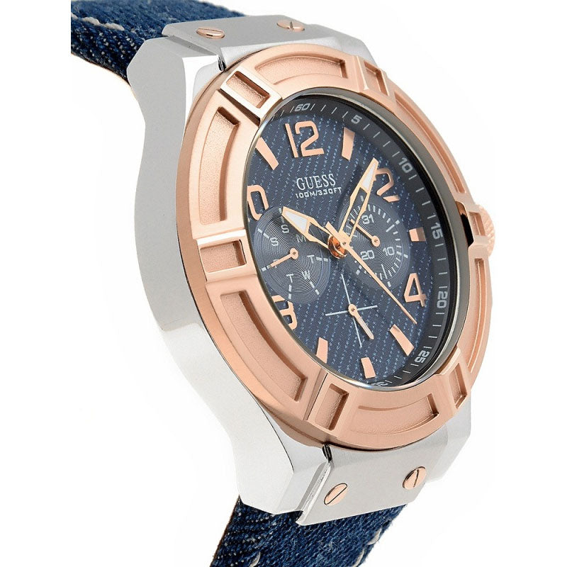 Guess Rigor Blue Dial Leather Strap Men's Watch W0040G6