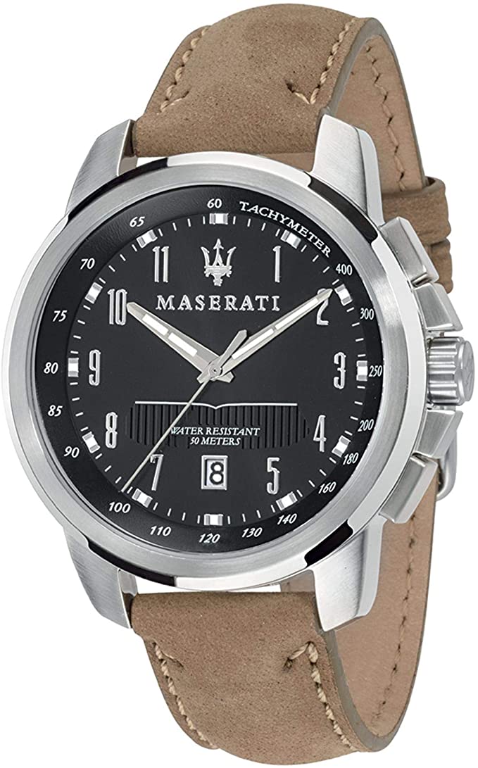 Maserati Successo Black Dial Beige Leather Men's Watch R8851121004