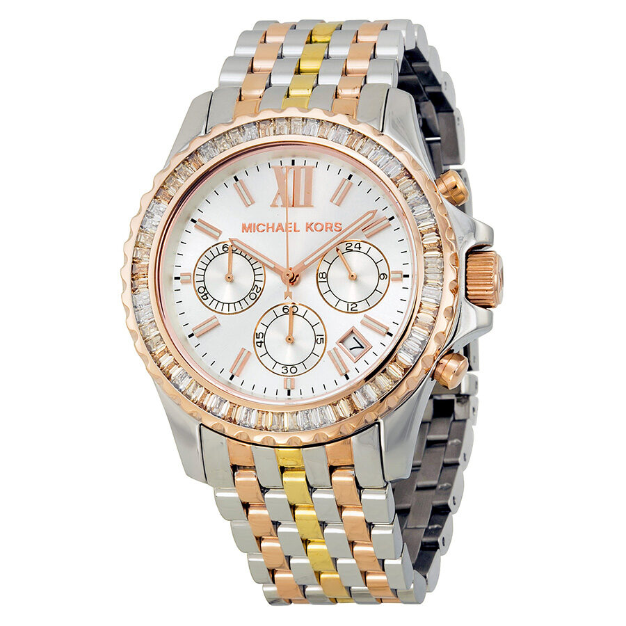 everest chronograph silver dial tri-tone ladies watch mk5876