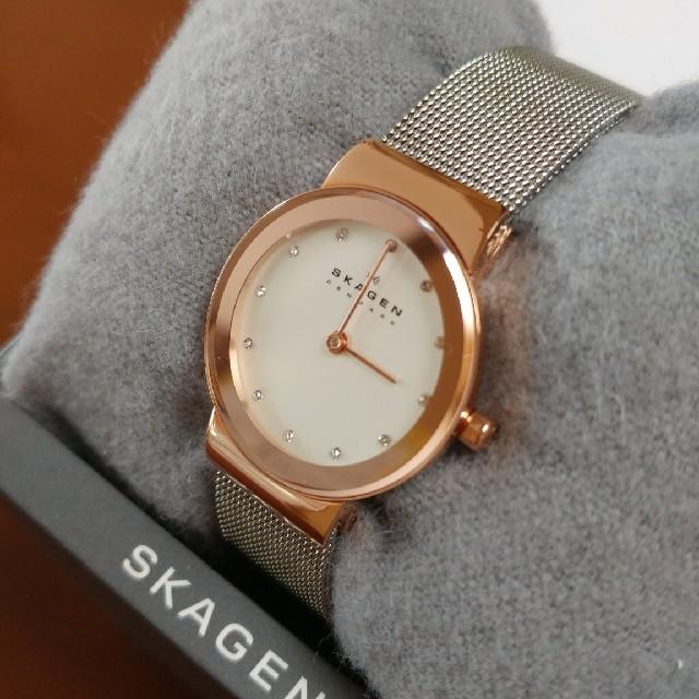 This Skagen Freja White Dial Stainless Steel Ladies Watch 358SRSC comes in rose gold-tone stainless steel case with a stainless steel mesh bracelet. Fixed rose gold-tone mirrored bezel. White dial with rose gold-tone hands and Swarovski crystal hour markers. Dial Type: Analog. Quartz movement. Scratch resistant mineral crystal. Pull / push crown. Solid case back. Case size: 26 mm. Case thickness: 5 mm. Round case shape. Band width: 14 mm. Box clasp. Water resistant at 30 meters / 100 feet. Functions: hour, minute. Casual watch style.