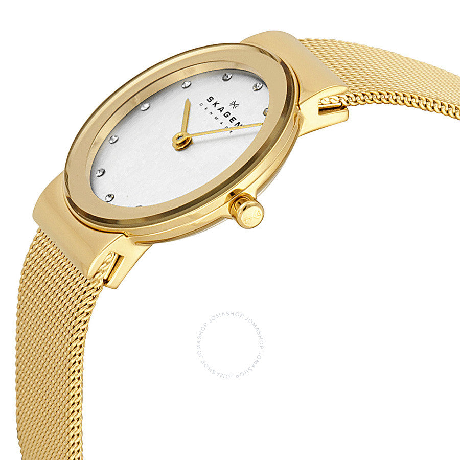 Skagen Freja Silver Dial Gold-plated Mesh Ladies Watch 358SGGD