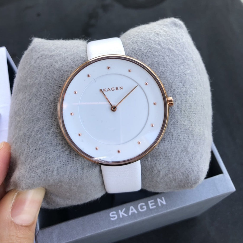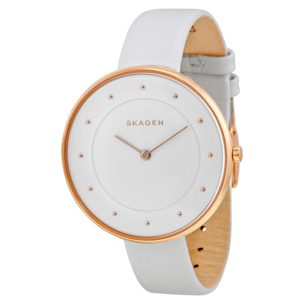 Skagen Gitte White Dial Leather Strap Ladies Watch SKW2291