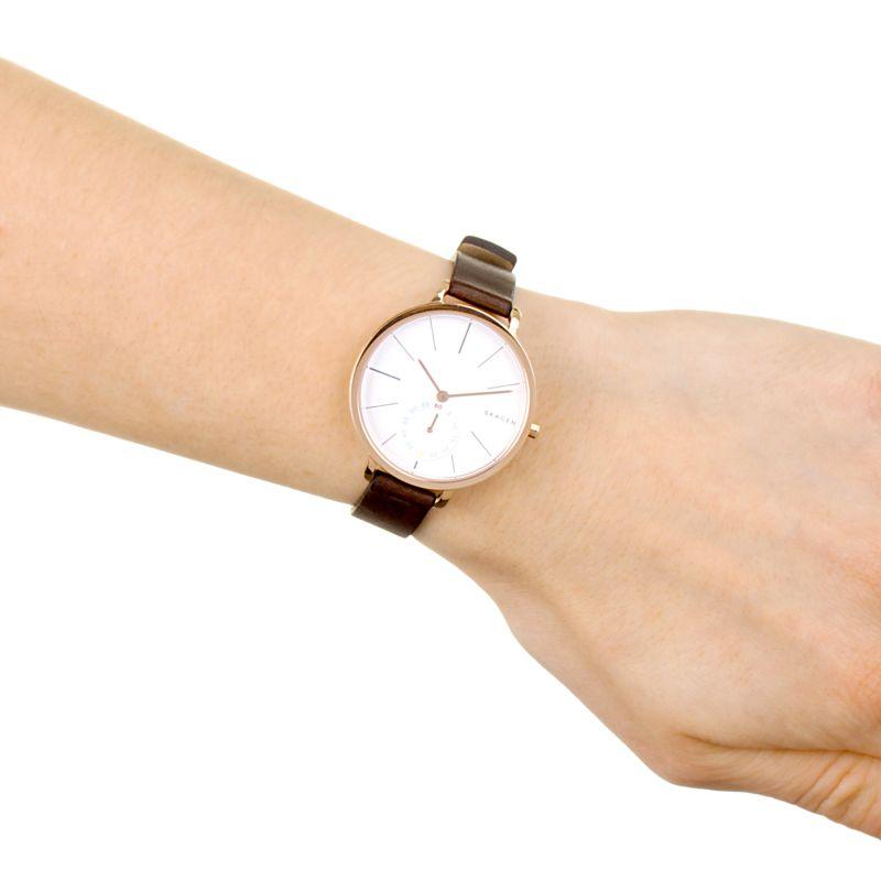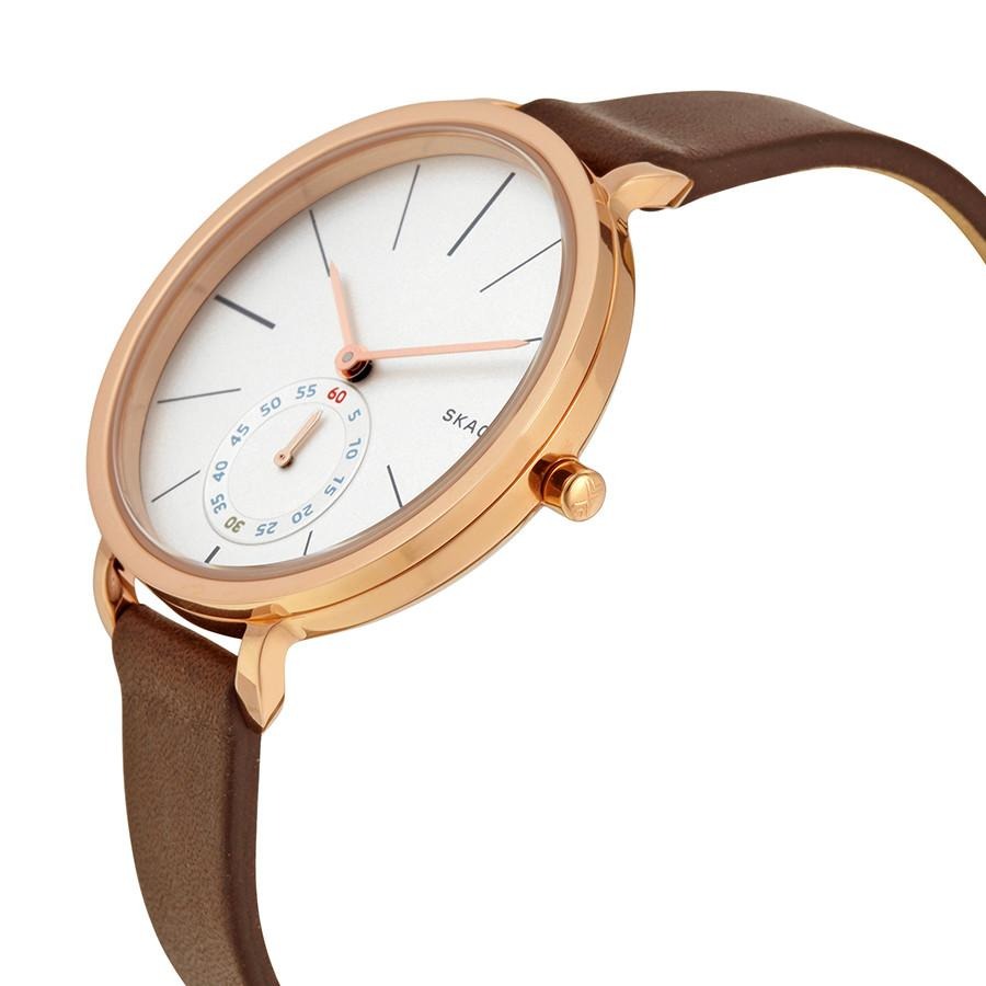 Skagen Hagen White Dial Brown Leather Ladies Watch SKW2356