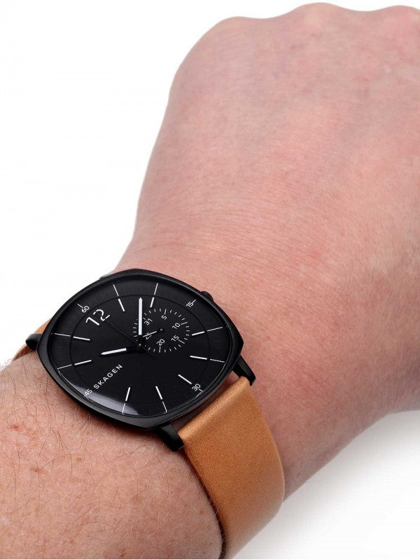 Skagen Rungsted Black Dial Tan Leather Men's Watch SKW6257