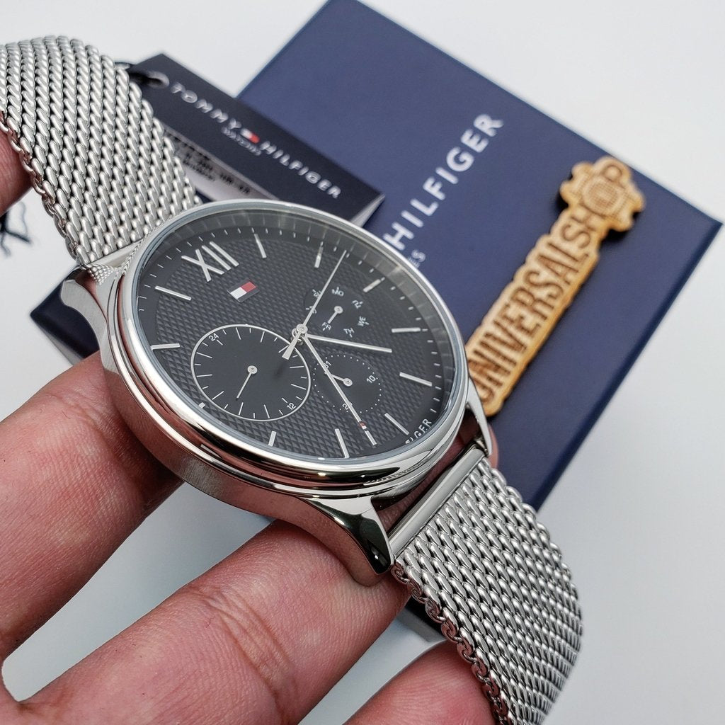 Tommy Hilfiger Black Dial Stainless Steel Mesh Men's Watch 1791415