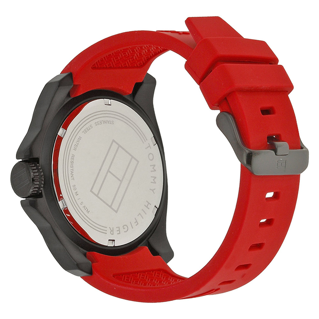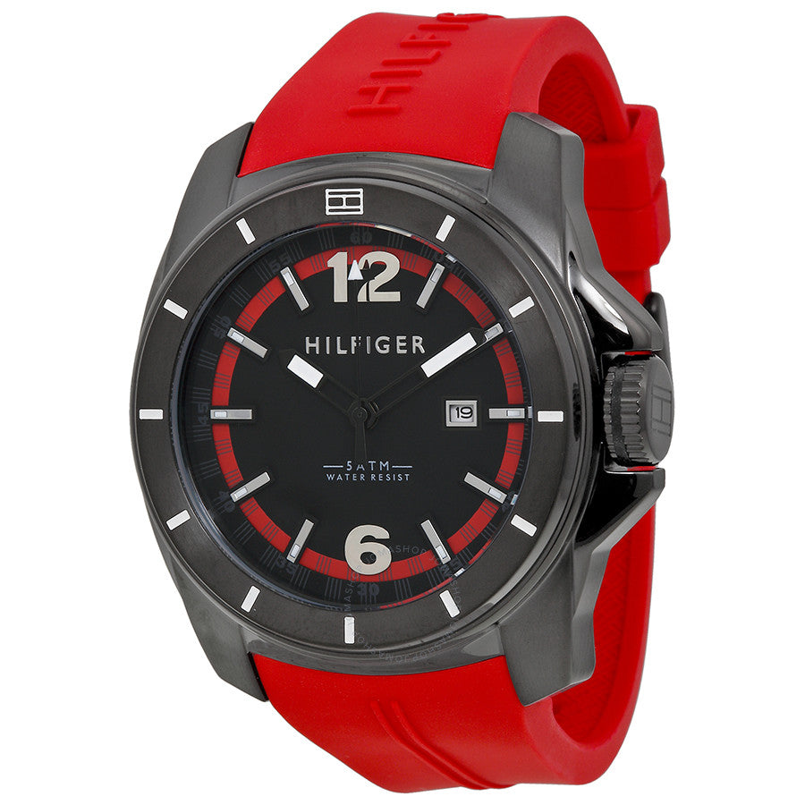 Tommy Hilfiger Black Dial Red Rubber Strap Men's Watch 1791112